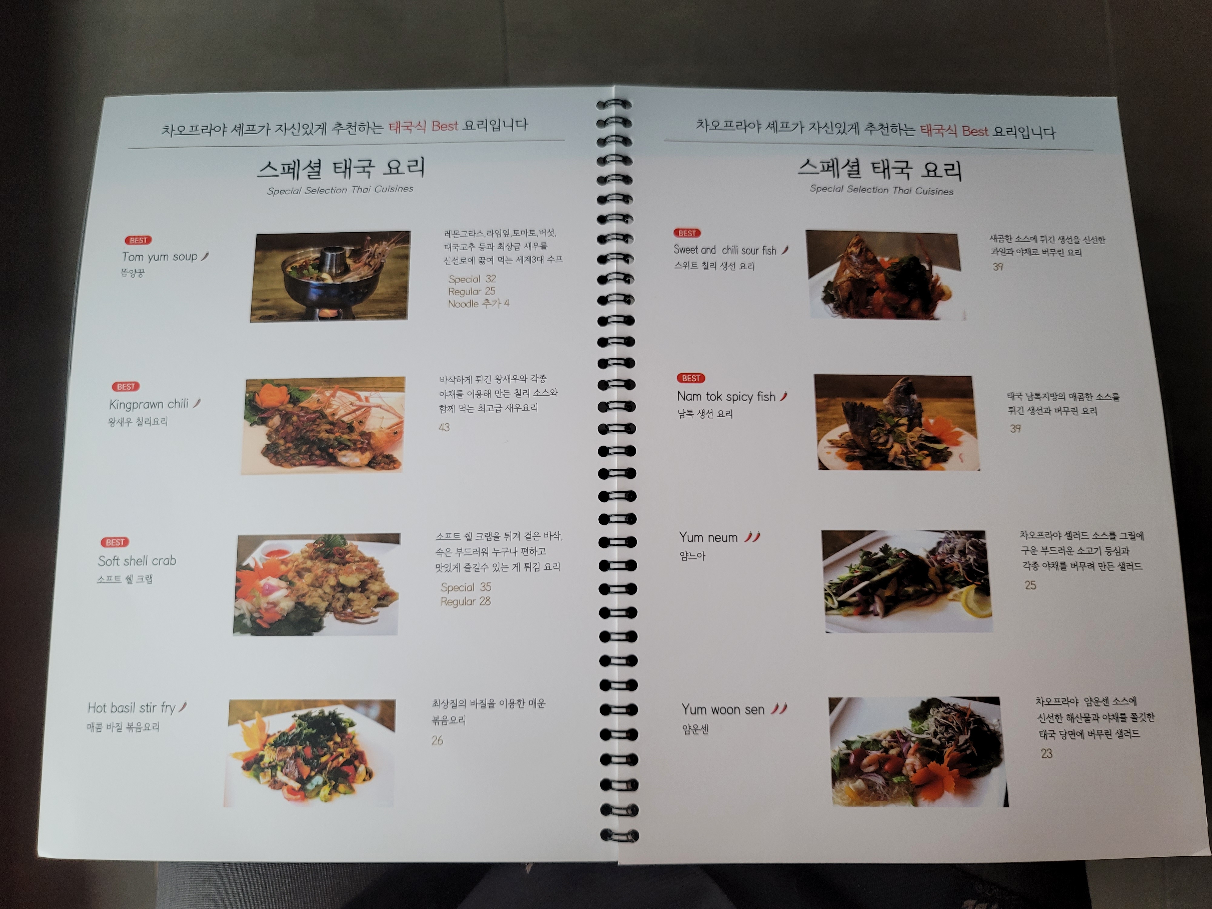 오늘읒 똠양꿍에 푸팟 퐁커리를 시켰다