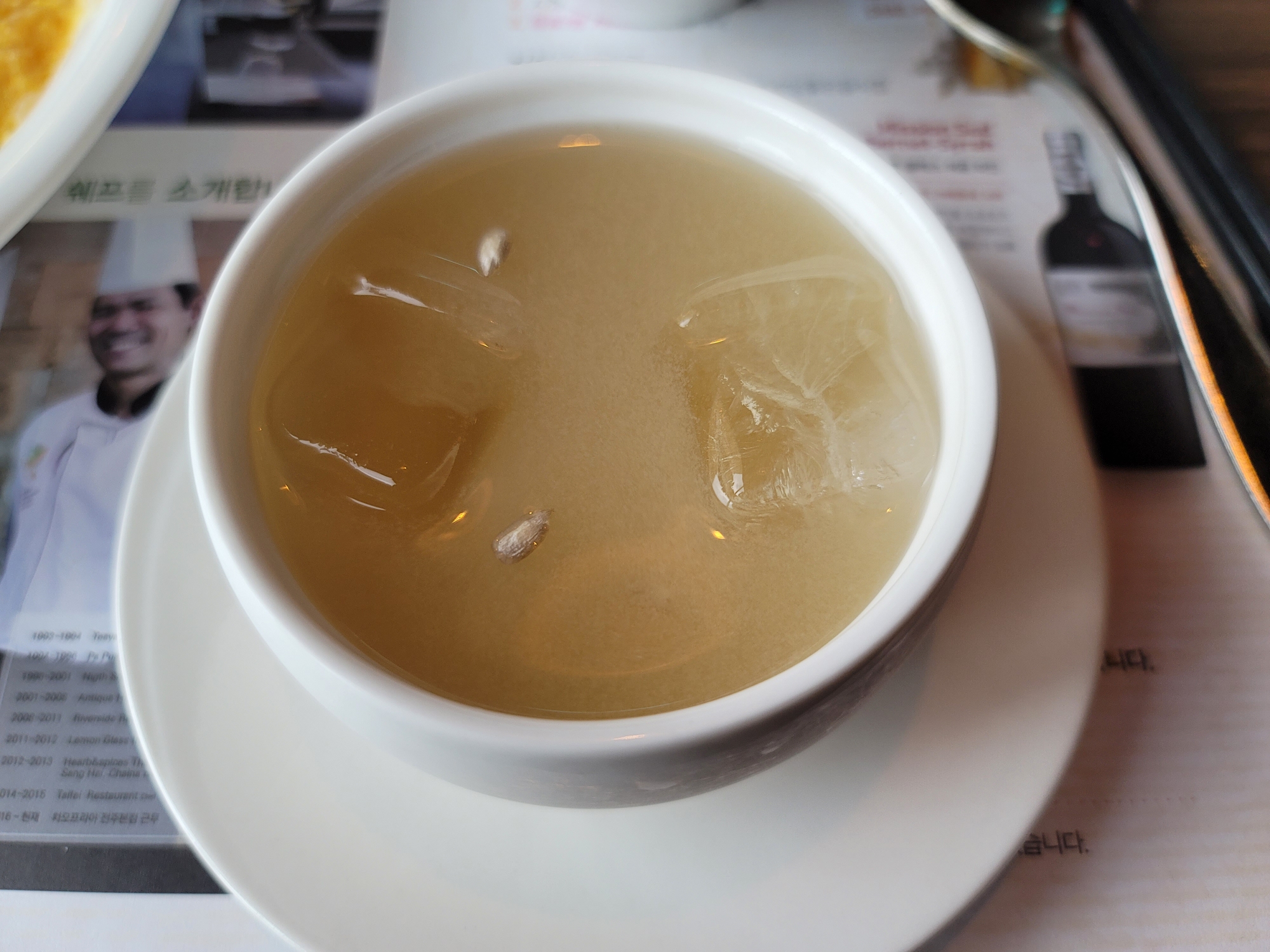 후식으로는 커피, 아이스커피, 식혜, 수정과, 오미자, 매실차등 총6종류가 있다.