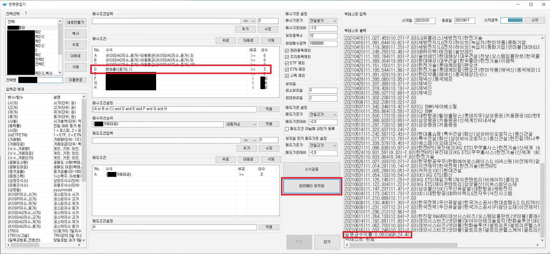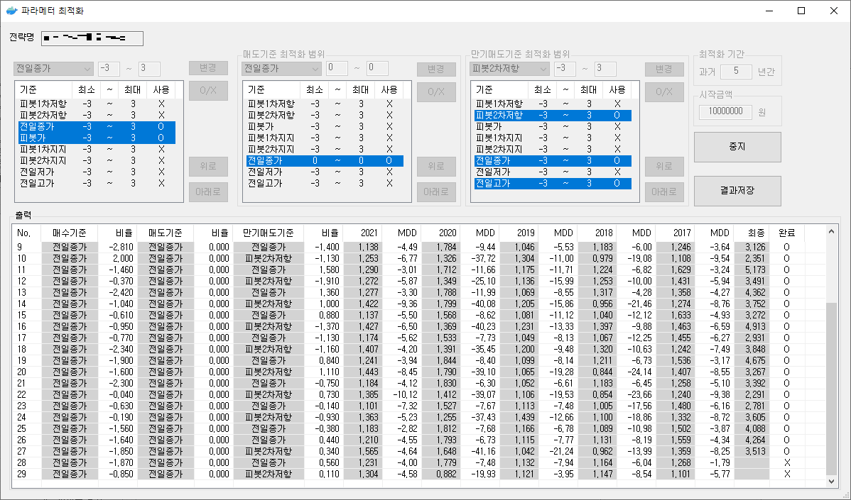 여러 매수, 매도 조건을 통해서 전략을 만들고 나면