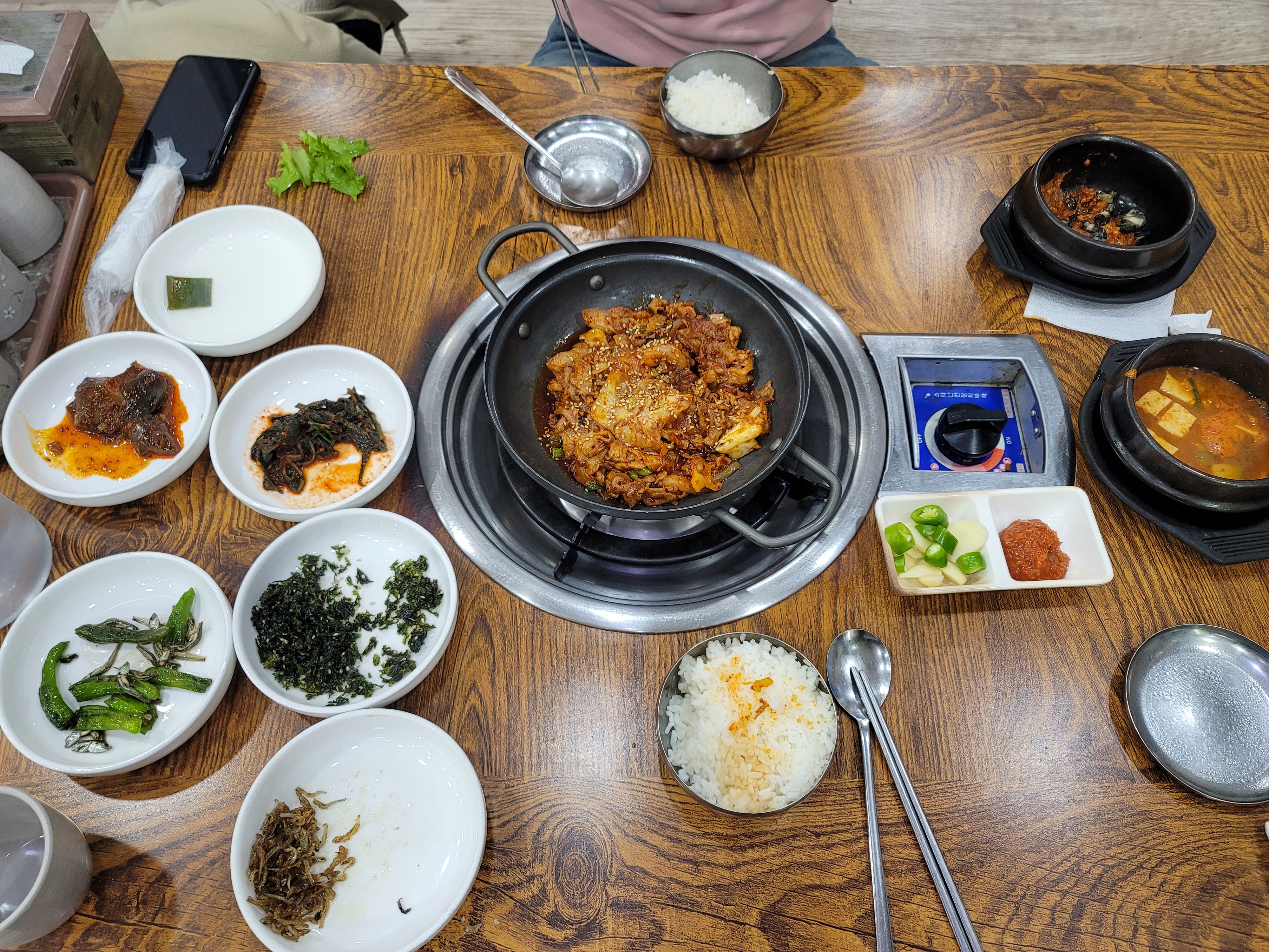 제육쌈밥을 시켜도 우렁된장이랑 된장찌개를 준다.