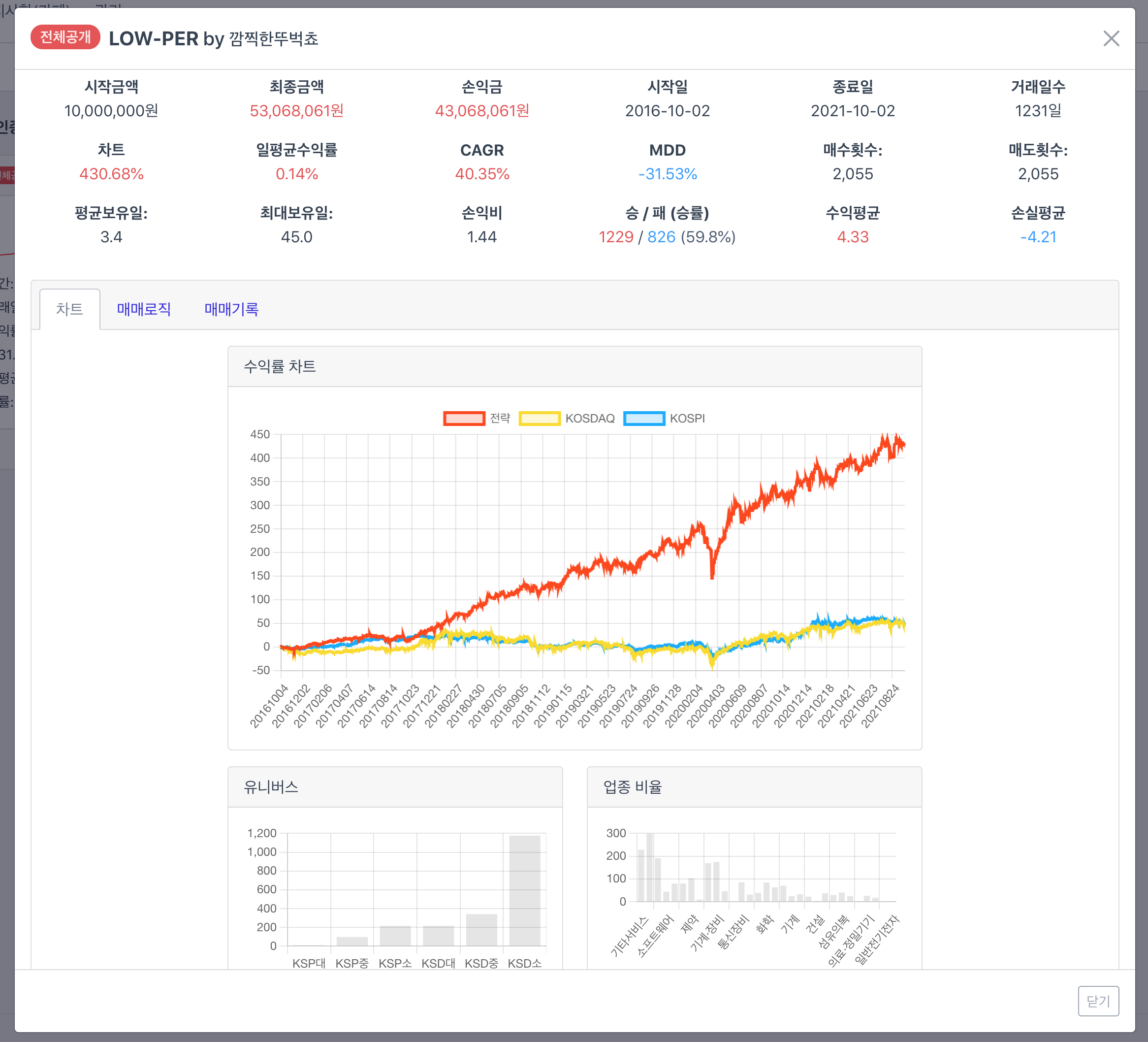 Stockship Online로 LOW-PER 전략을 구현해 보았다.