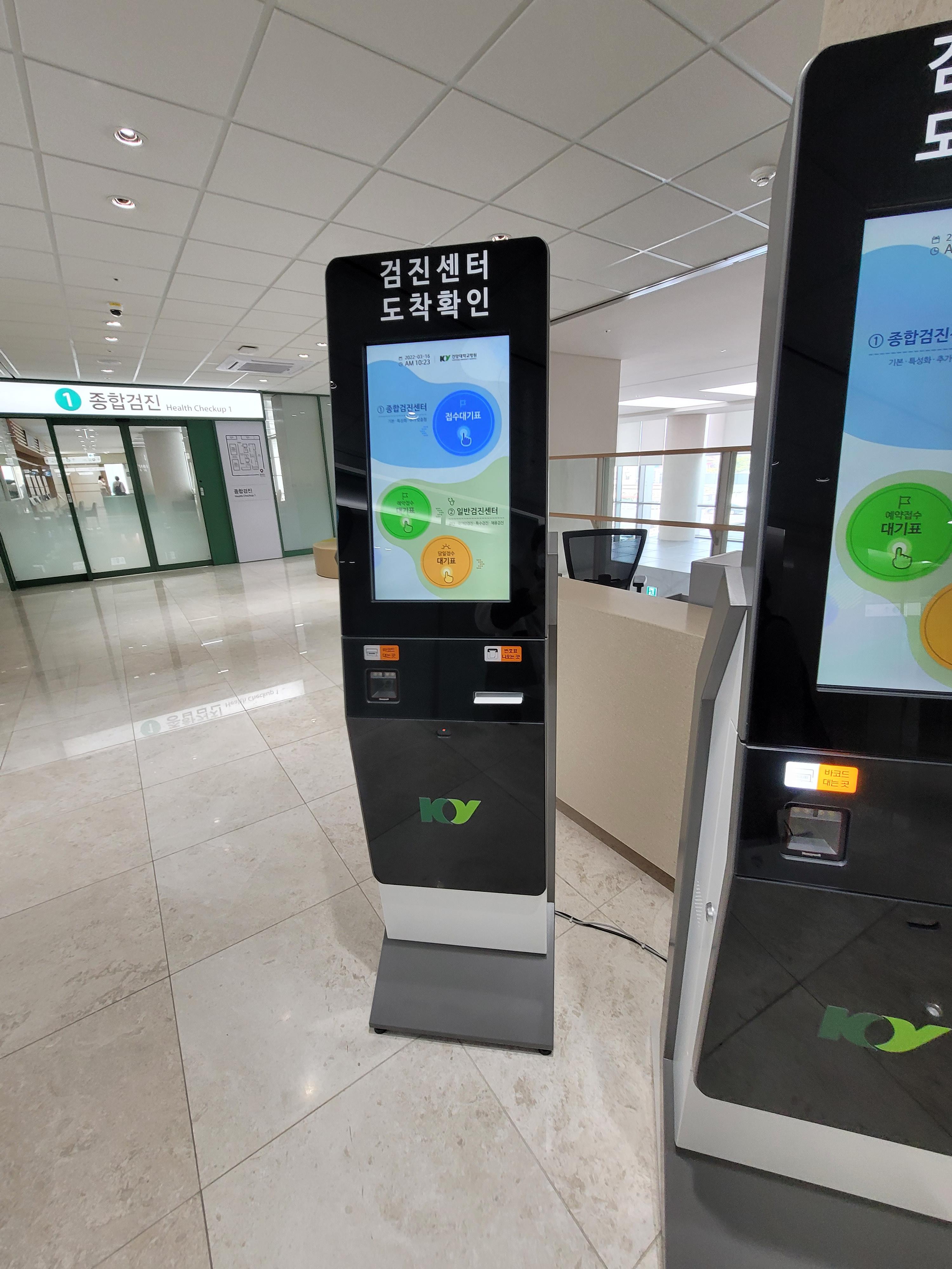검진센터에 입구에 체크인 키오스크가 있다.